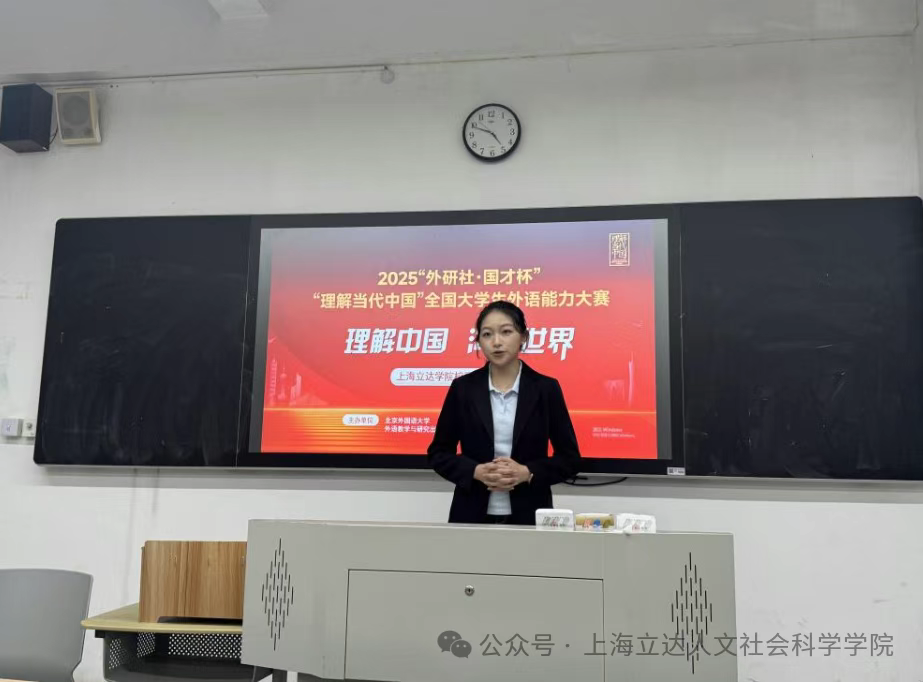 10月13日外研社 • 国才杯”“理解当代中国”全国大学生英语演讲比赛上海立达学院校赛圆满结束。“外研社•国才杯”全国英语演讲大赛是由外语教学与研究出版社和中国外语与教育研究中心联合主办,面向全国全日制在校大学生的英语演讲赛事。该赛事致力于提升大学生跨文化交际能力,是高校外语教育的重要实践平台。在本次校赛中,总共22位来自各院系的参赛选手凭借扎实的英语功底和清晰的逻辑表达,完成了一场高质量的赛事比拼。