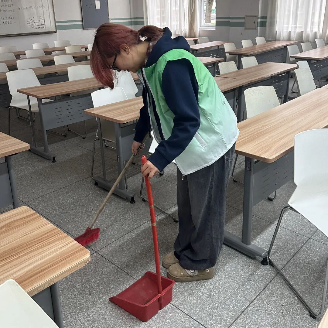 同学们认真擦拭每一块黑板,仔细清理黑板槽内的粉笔灰,确保教学设备干净整洁,让每一间教室都以崭新的面貌迎接课堂。